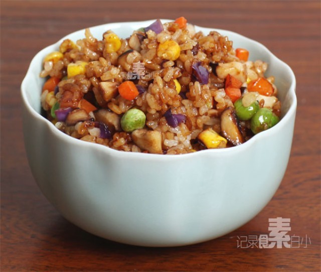 原料: 米饭 香菇 紫甘蓝 胡萝卜 青豆 玉米粒